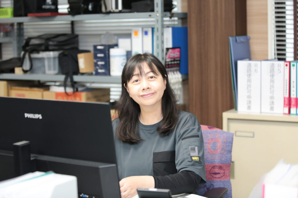 私は工務保全部の事務作業がメインの仕事ですが、慣れない用語やPC作業に苦戦することがあります。「わからんままにする方がダメなんよ。いつでも聞いてくれたらええんよ。」と上司から声をかけてもらえる環境に働きやすさを感じています。データ管理や提出書類作成など、工務作業で外に出ている社員のバックアップができるよう頑張りたいと思っています。